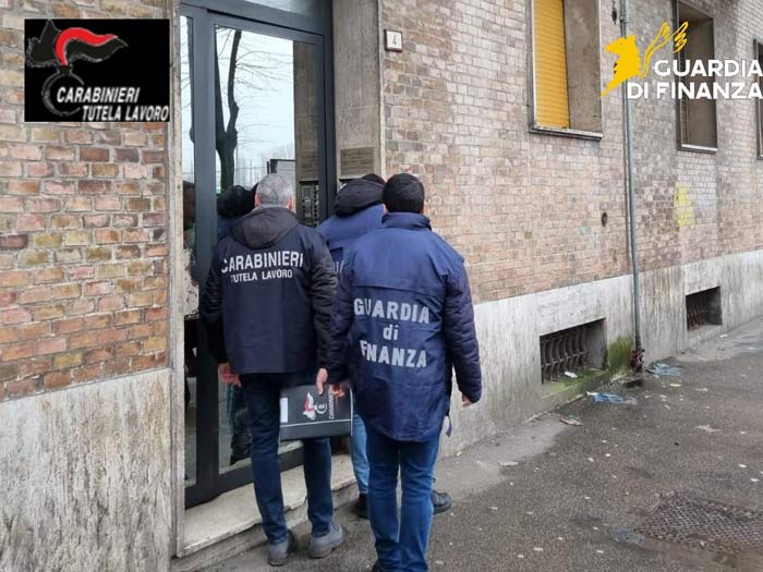 Le attività tecniche di polizia svolte dal NIL Carabinieri di Reggio Emilia, seguite da un accesso ispettivo congiunto con il personale dell’ITL e del Comando Provinciale locale, hanno evidenziato che un soggetto di nazionalità cinese, titolare di una ditta di confezioni sita nel comune di Reggio Emilia, avrebbe sfruttato tra maggio 2023 e ottobre 2024 circa 14 lavoratori, di cui 3 clandestini, impiegandoli per oltre 12 ore al giorno senza riposi settimanali e in condizioni di salute e sicurezza totalmente non conformi alla normativa vigente. Il capannone aziendale è risultato infatti inidoneo a causa di un sistema di aerazione non funzionante, presenza di muffa e umidità sulle pareti, scarsa illuminazione e inefficienza dei sistemi antincendio, senza che alcun lavoratore fosse stato formato sui rischi professionali; inoltre, il personale veniva alloggiato in appartamenti fatiscenti messi a disposizione dal datore di lavoro, con camere ricavate da pareti in cartongesso e bagni privi delle minime condizioni igienico-sanitarie.